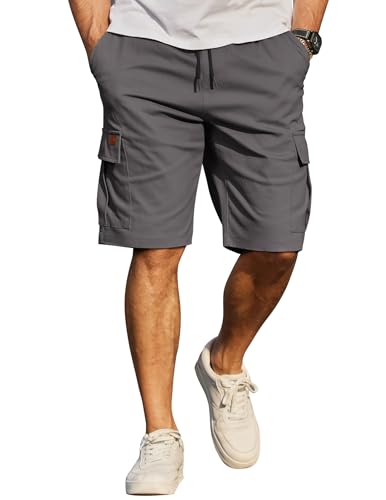 COOFANDY Kurze Hosen Herren Baumwolle Cargo Shorts Freizeithose Herren Kurz Elastische Taille Sommer Chino mit Taschen Dunkelgrau 3XL