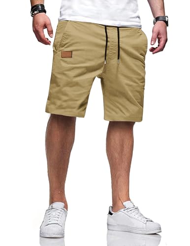 TARAINYA Shorts Herren Kurze Hose Herren Tunnelzug Baumwolle Sommer Chino Casual mit Taschen Hellkhaki L